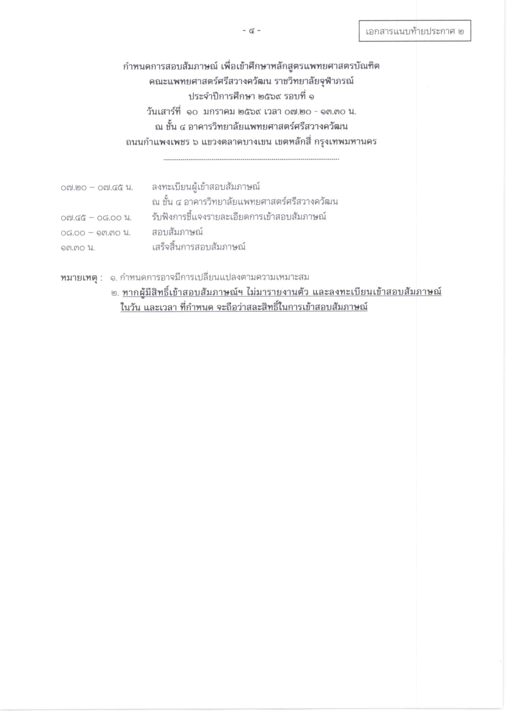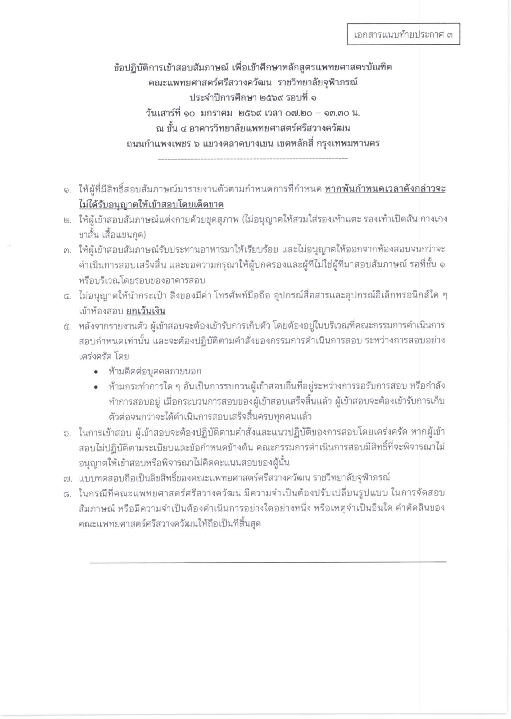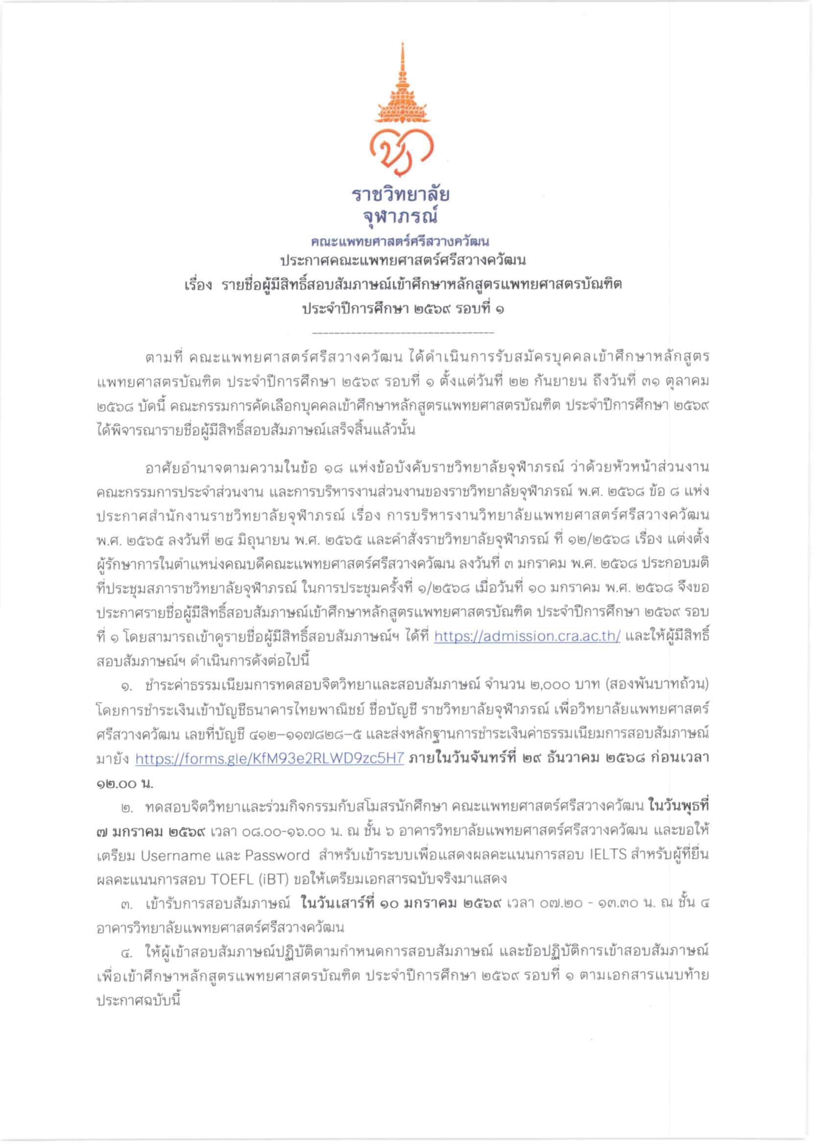 เรื่อง รายชื่อผู้มีสิทธิ์สอบสัมภาษณ์เข้าศึกษาหลักสูตรแพทยศาสตรบัณฑิต ประจำปีการศึกษา ๒๕๖๙ รอบที่ ๑