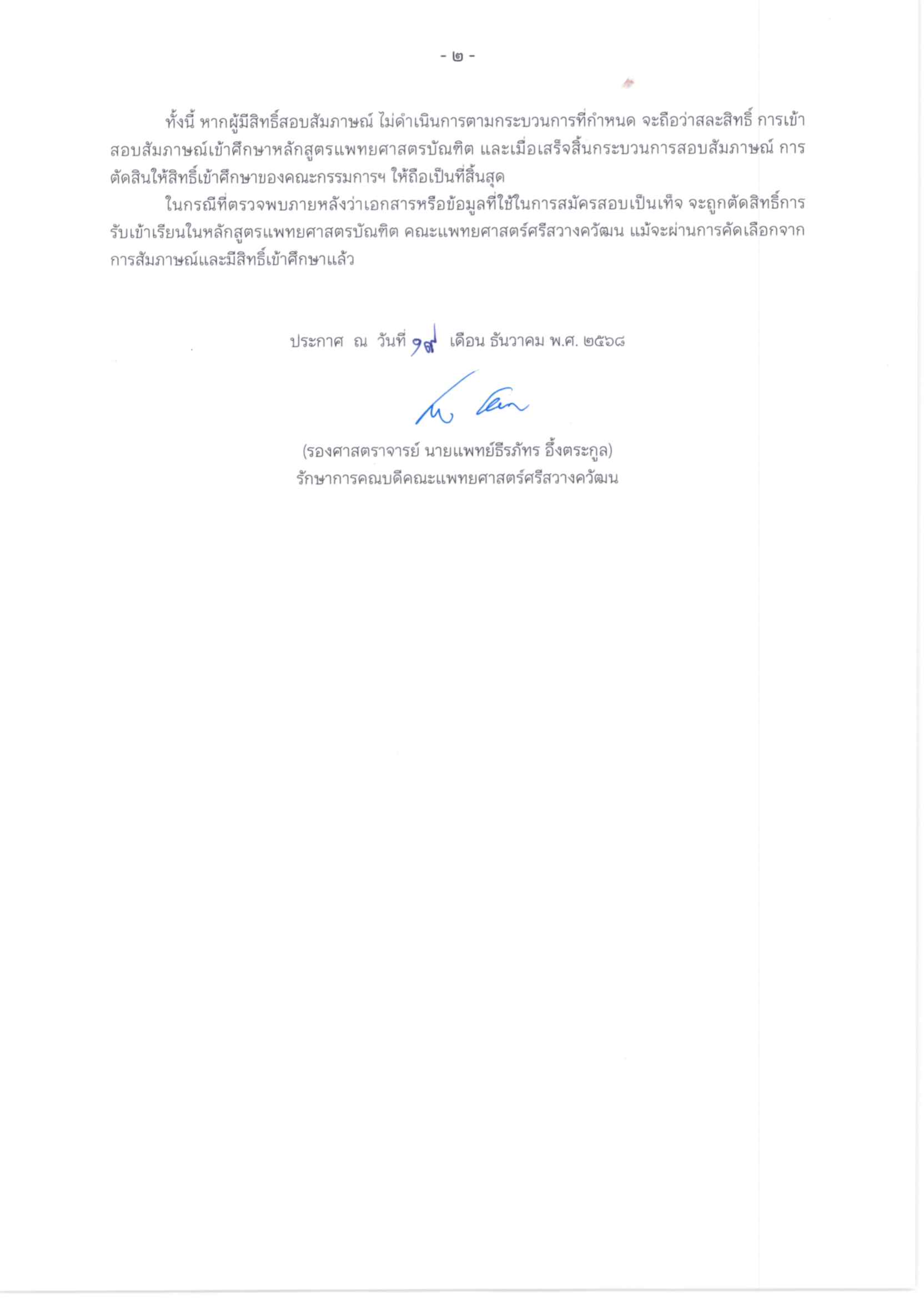 ประกาศวิทยาลัยแพทยศาสตร์ศรีสวางควัฒน