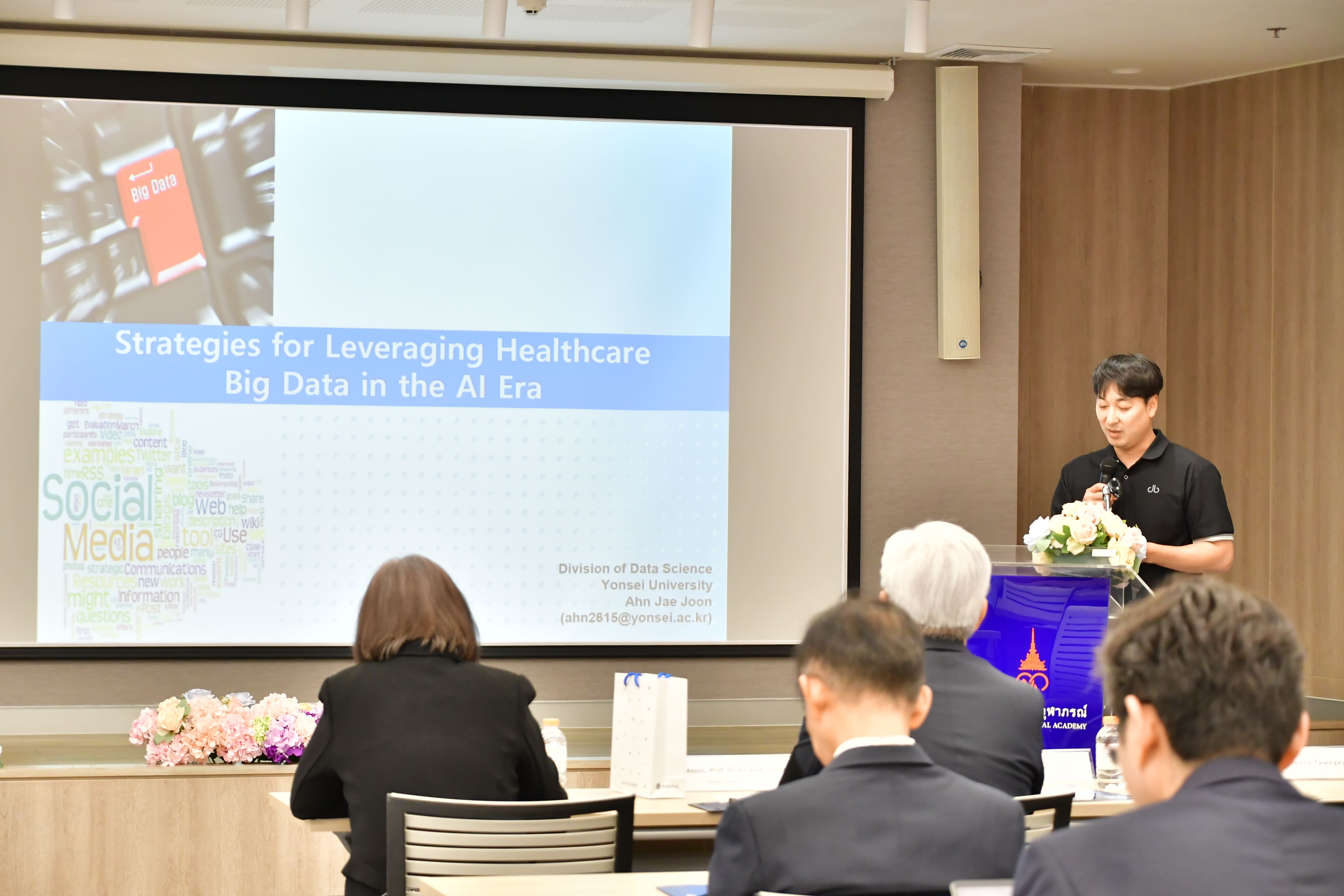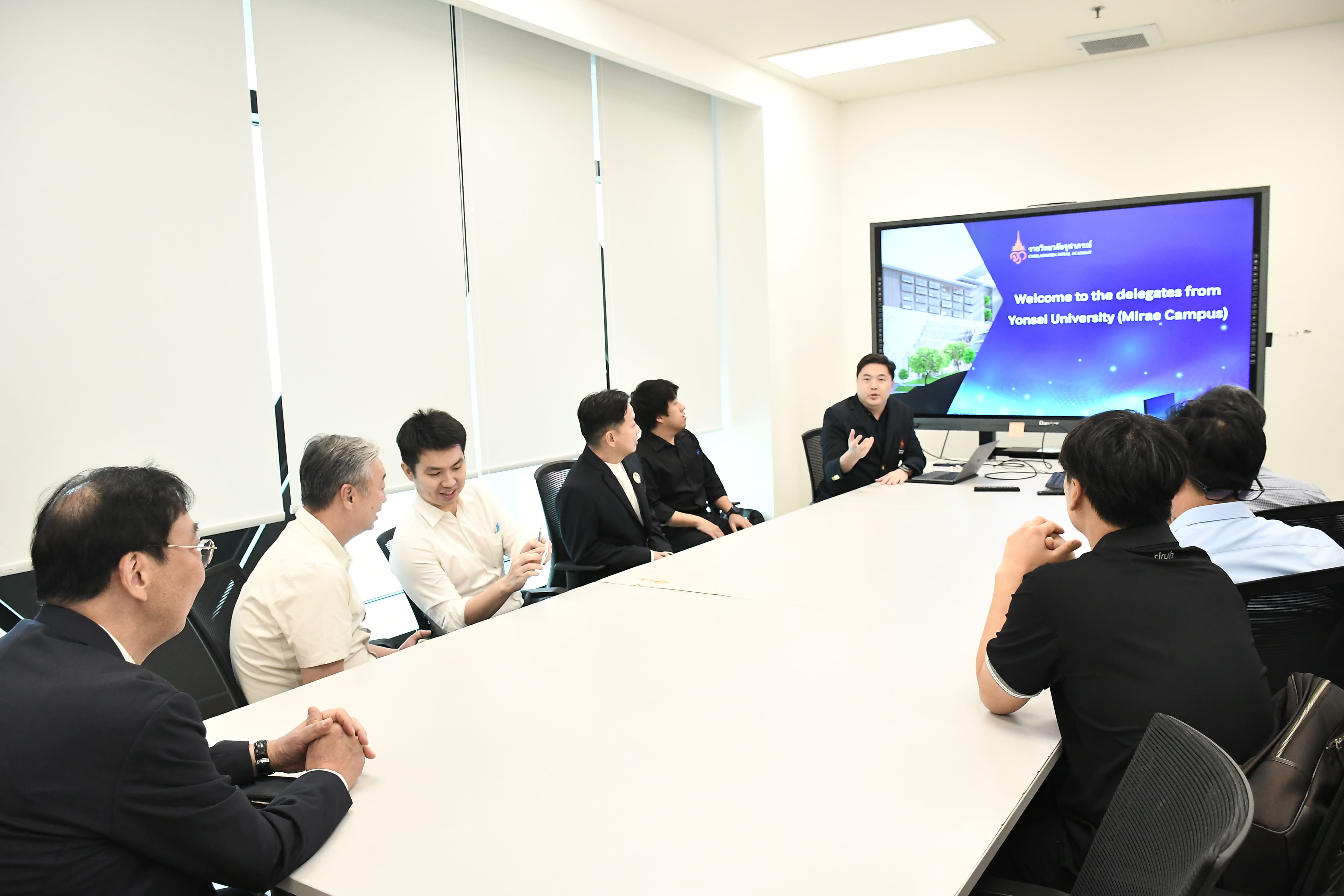 ในการนี้ ได้รับเกียรติจากคณะผู้บริหารระดับสูงของ Yonsei University Mirae Campus เข้าร่วมงาน นำโดย Prof. Yeonseob Ha (Chancellor), Professor Dr. Chulhee Min (Chair of Department of Radiation Convergence Engineering), Professor Byungjo Jung (Dean of College of Software and Digital Healthcare Convergence), Professor Jangyoung Kim (Dean of Yonsei University Wonju College of Medicine) และ Professor Jaejoon Ahn (Professor at Division of Data Science) พร้อมด้วยการบรรยายพิเศษ (Scientific Talk) ในหัวข้อ “Building the Bridge: Connecting AI Innovation to Clinical Workflows” โดย อาจารย์ ดร.แสงอุทิศ ทองสวัสดิ์ อาจารย์ประจำคณะแพทยศาสตร์ศรีสวางควัฒน ซึ่งมุ่งเน้นการประยุกต์ใช้ AI ในกระบวนการทำงานทางคลินิกอย่างมีประสิทธิภาพ