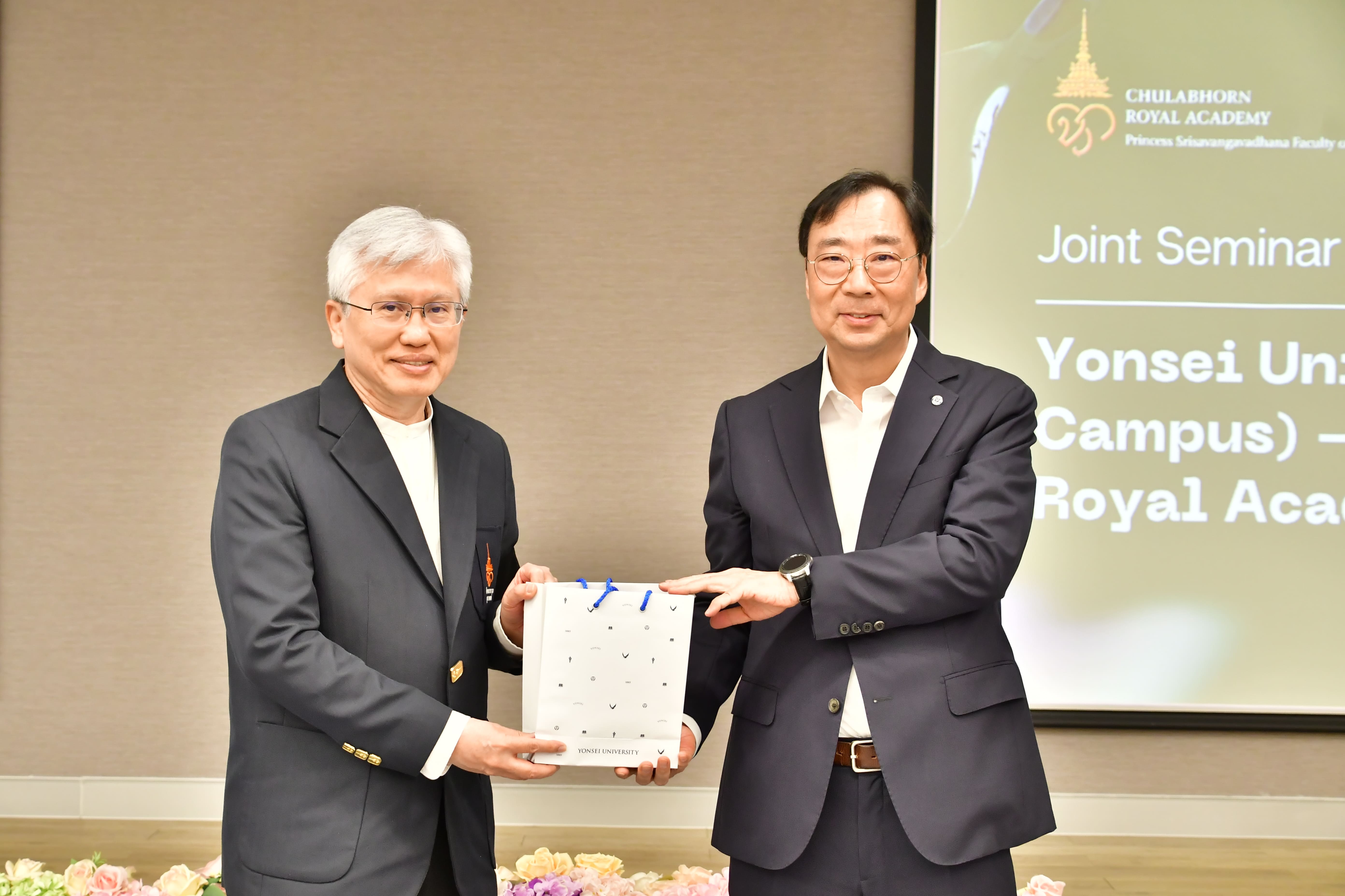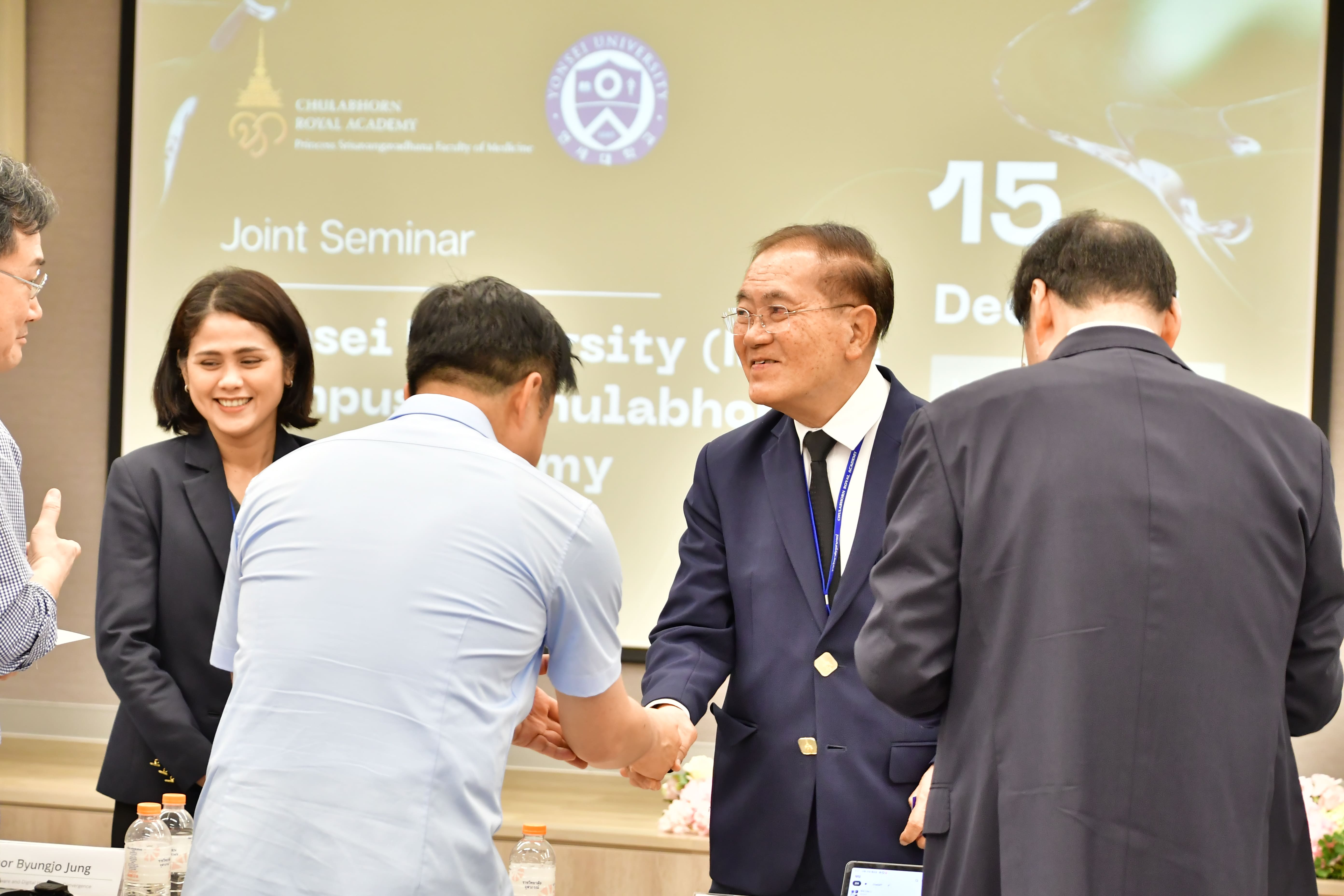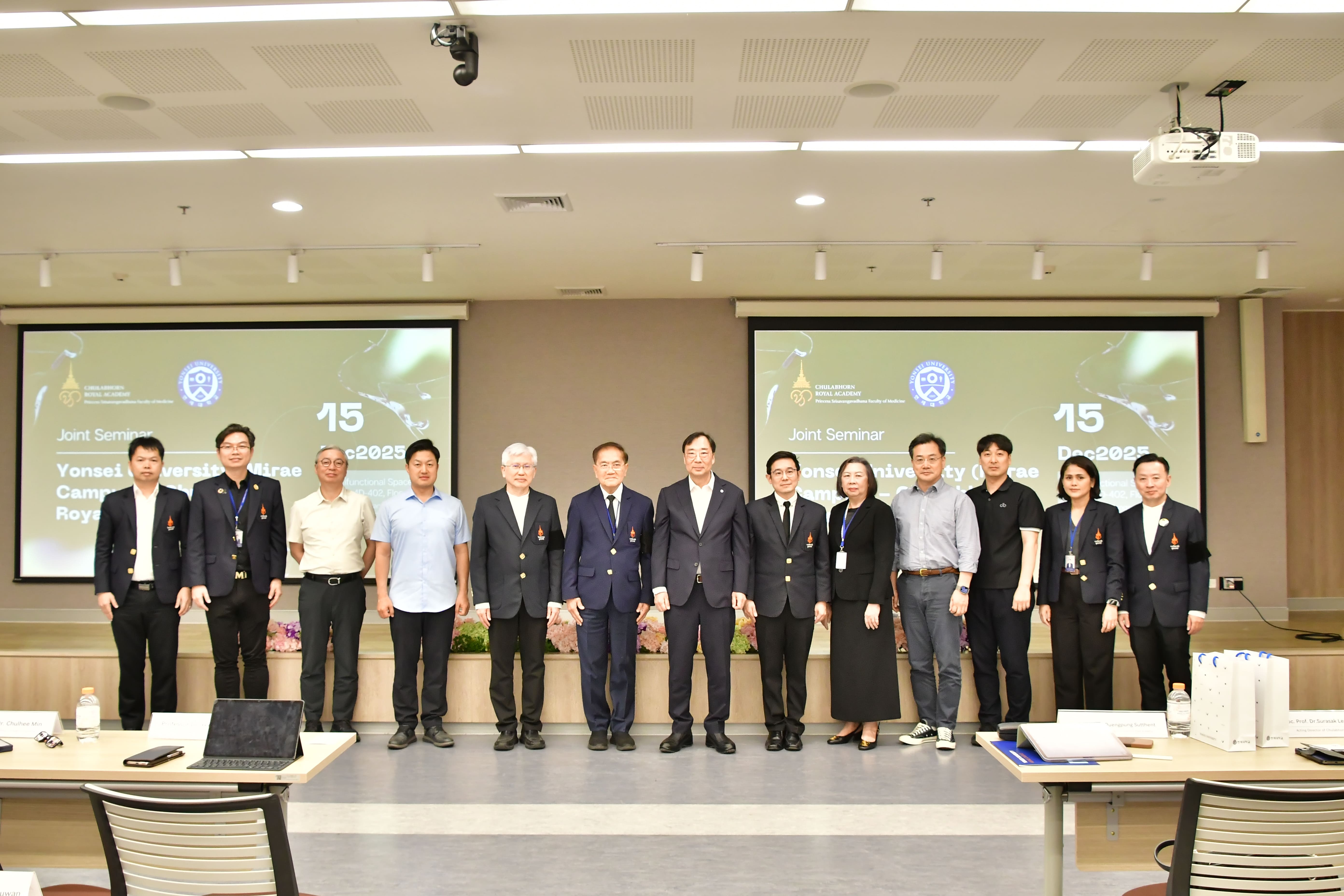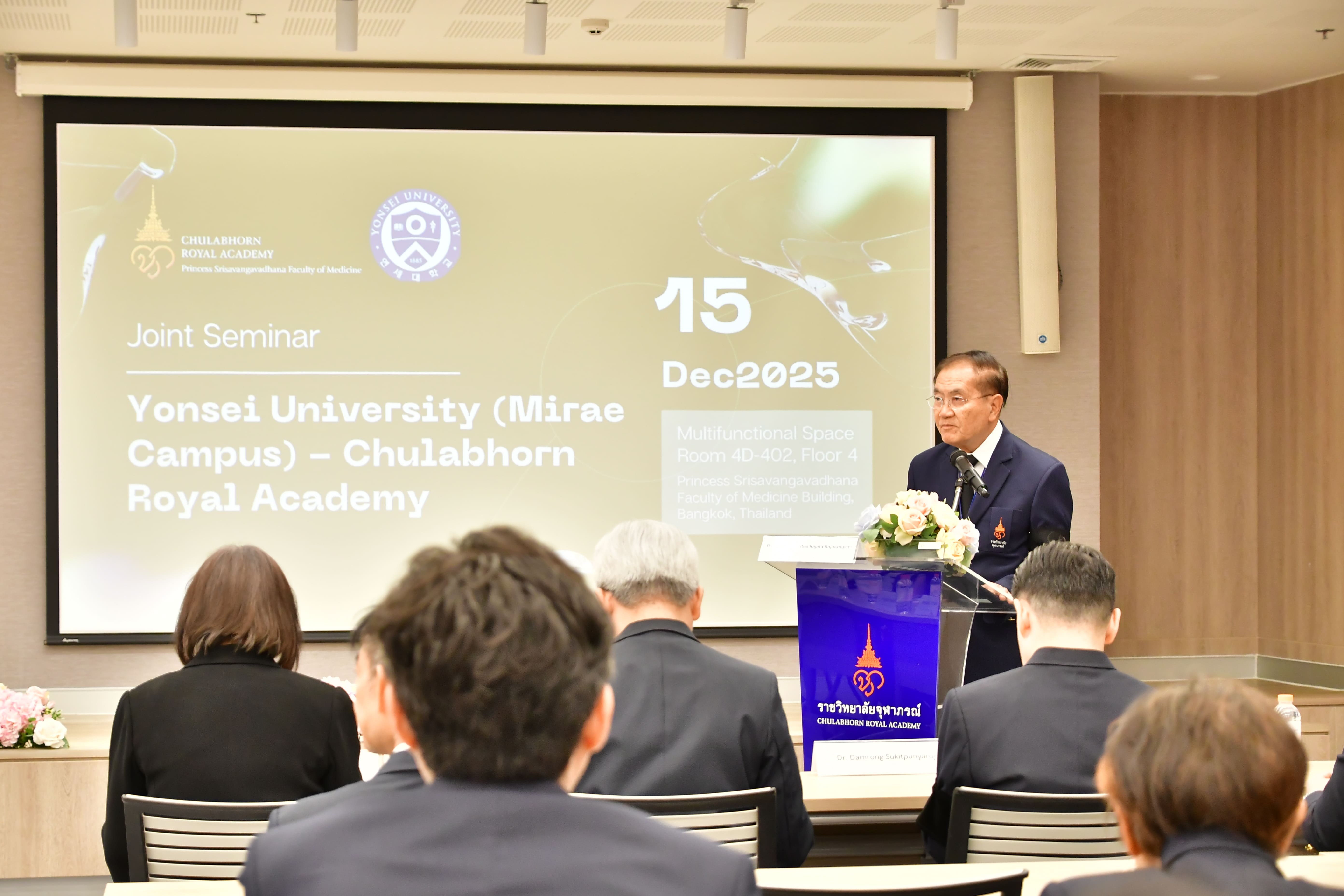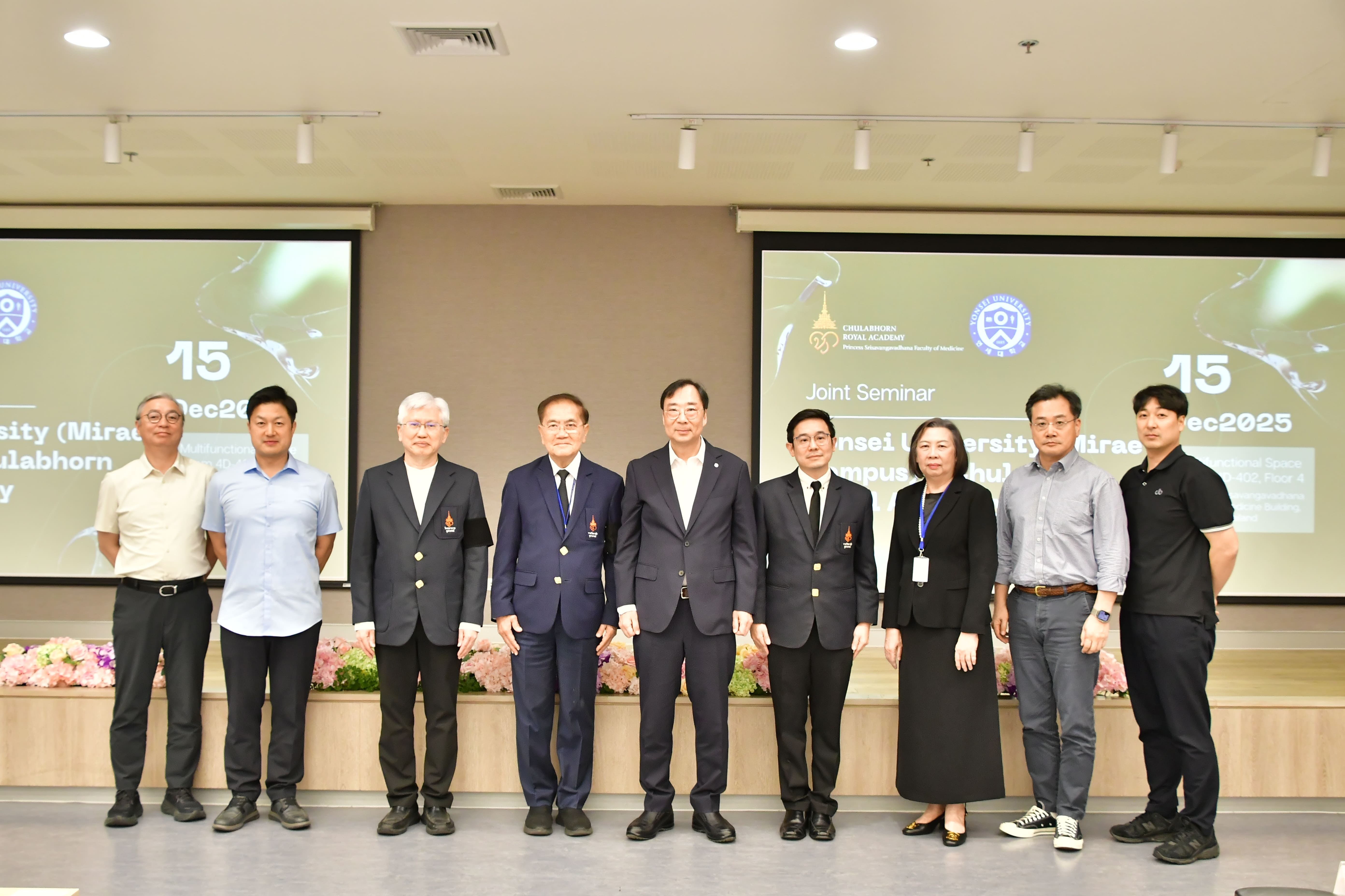 เมื่อวันจันทร์ที่ ๑๕ ธันวาคม ๒๕๖๘ คณะแพทยศาสตร์ศรีสวางควัฒน ราชวิทยาลัยจุฬาภรณ์ ร่วมกับ มหาวิทยาลัยยอนเซ วิทยาเขตมิเร (Yonsei University Mirae Campus) สาธารณรัฐเกาหลี จัดโครงการประชุมวิชาการระดับนานาชาติ ประจำปี ๒๕๖๙ ในหัวข้อ “Joint Seminar Yonsei University (Mirae Campus) – Chulabhorn Royal Academy” ณ ห้อง Multifunctional Space 4D-402 และห้องประชุม Seminar 4B-407 อาคารวิทยาลัยแพทยศาสตร์ศรีสวางควัฒน เพื่อเป็นเวทีแลกเปลี่ยนองค์ความรู้ด้านการศึกษาและผลงานวิจัยนวัตกรรมระหว่างบุคลากรของทั้งสองสถาบัน